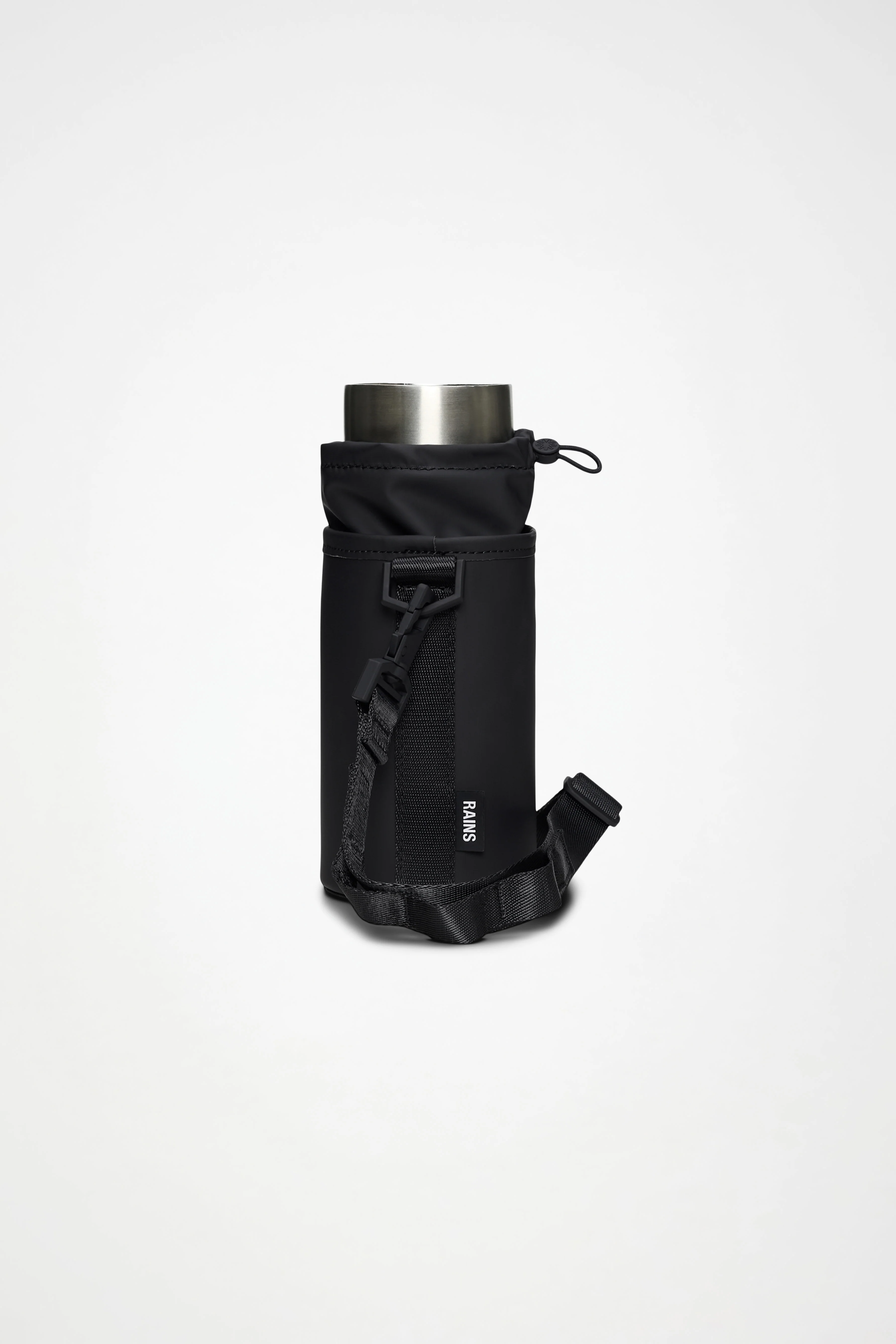 Bottle Holder está confeccionada en PU impermeable, el tejido característico de Rains diseñado para ofrecer máxima resistencia y durabilidad, junto con un tacto suave.