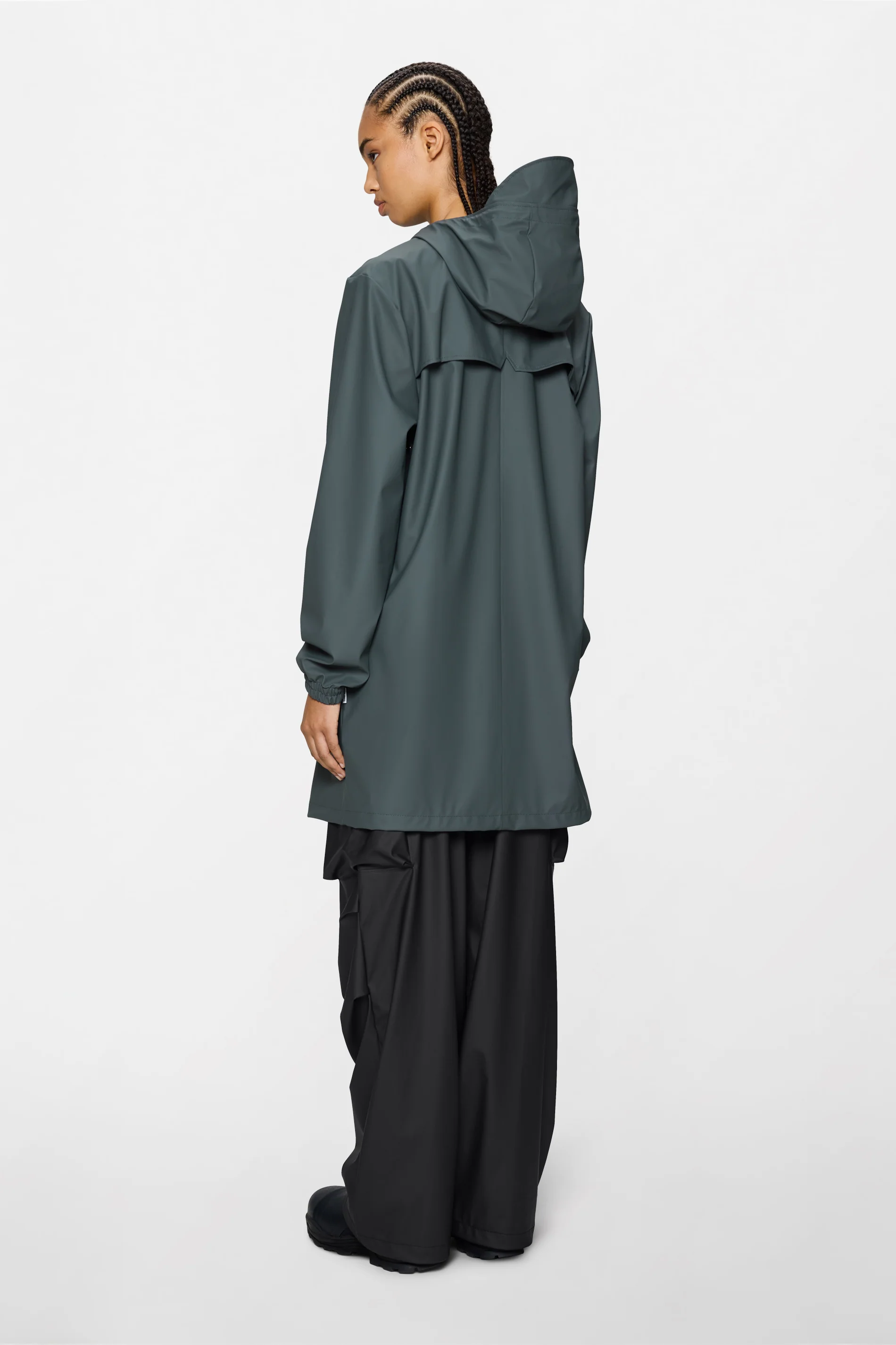 Este largo impermeable de primera calidad y silueta minimalista resulta extremadamente práctico para protegerse de la lluvia. Incluye una cremallera bidireccional impermeable, capucha con cordón de ajuste y visera incorporada, y puños elásticos.